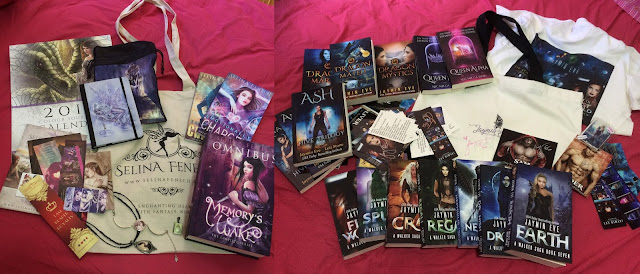 Some of the pre-orders were just so beautiful, especially Selena Fenech's whose came with beautiful handcrafted jewelry, a satin bag, notebook and beautiful calendar and Jaymin Eve's which came with rocking tote bag and t-shirt.....mind you, I did buy a lot of books from Jaymin LOL
